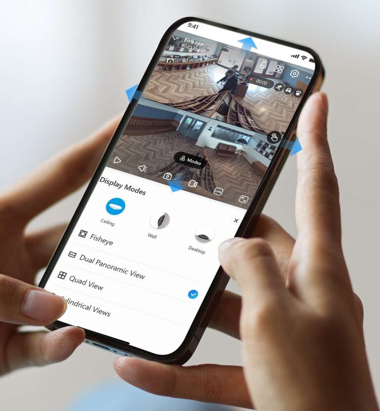 - Fisheye, Quad View, Dual Panoramic View, Cylindrical View