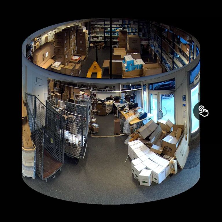 Unikt 360° Panorama innendørs overvåkningskamera med WiFi tilkobling. Det perfekte kamera for bedre oversikt over butikker, lager, osv.